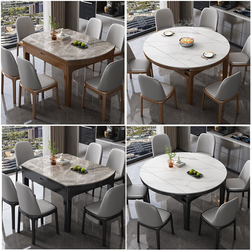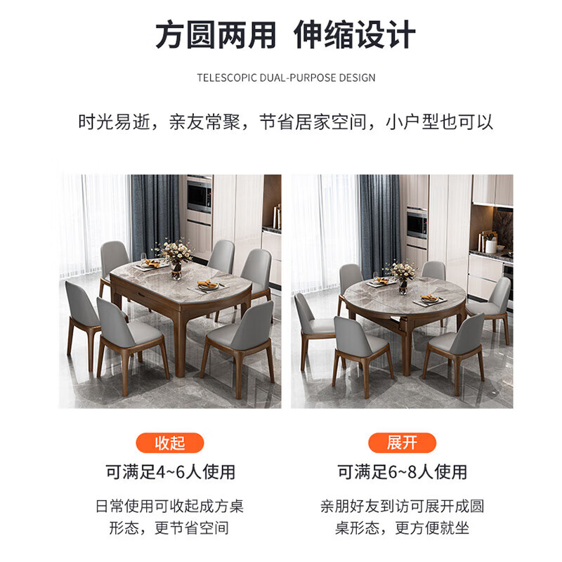 品族实木岩板餐桌简约可折叠电磁炉餐桌椅组合餐厅家具CZ-001 1.35+8价格:3399.00元!