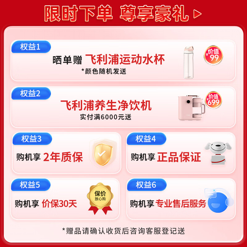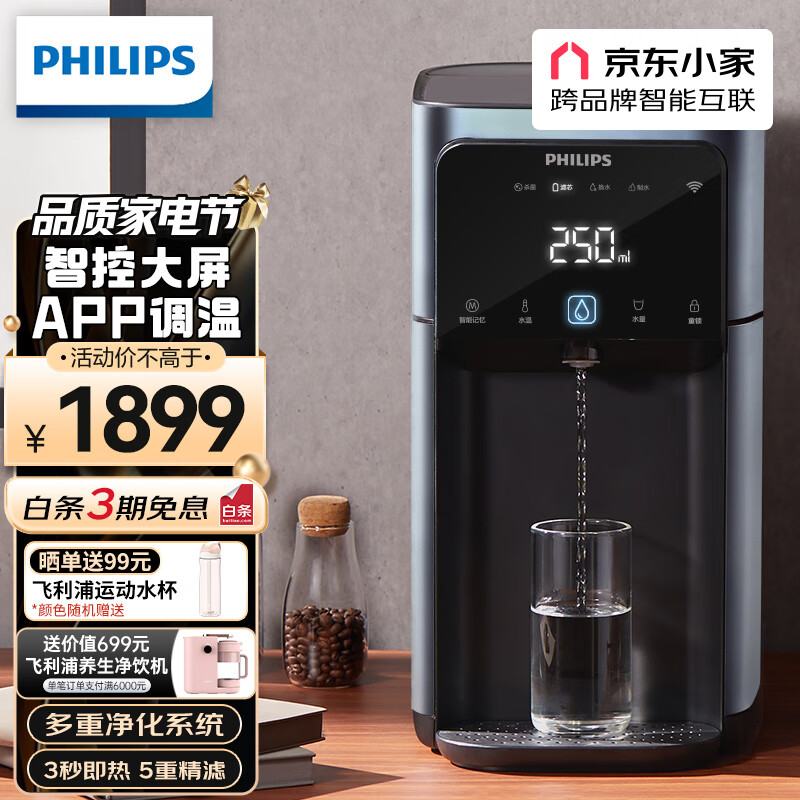 飞利浦(PHILIPS)加热净水器 家用即热式净水机台式免安装反渗透净水器直饮水机净饮一体机京东小家智能生态ADD6801价格:1899.00元!