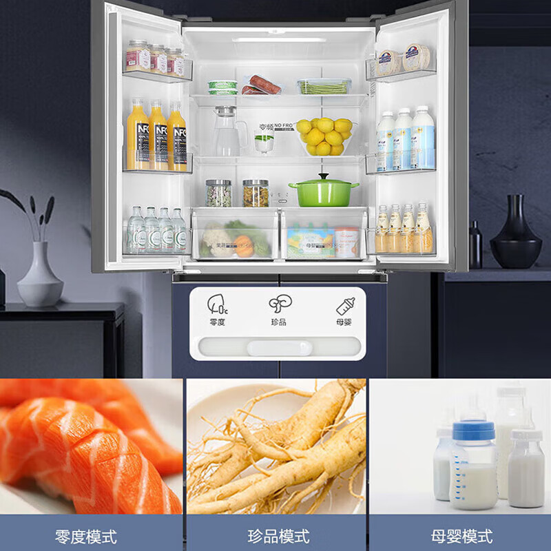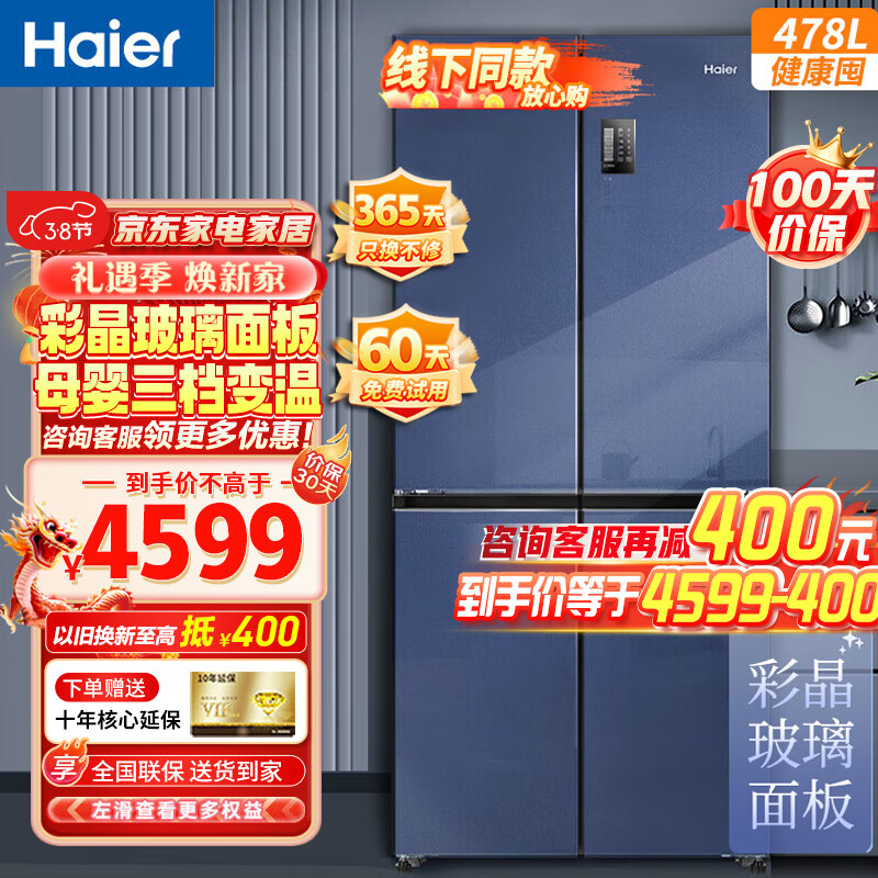 海尔(Haier)478升十字对开门冰箱四开门一级能效变频母婴空间三档变温大容量干湿分储BCD-478WGHTD5DB1价格:4399.00元!