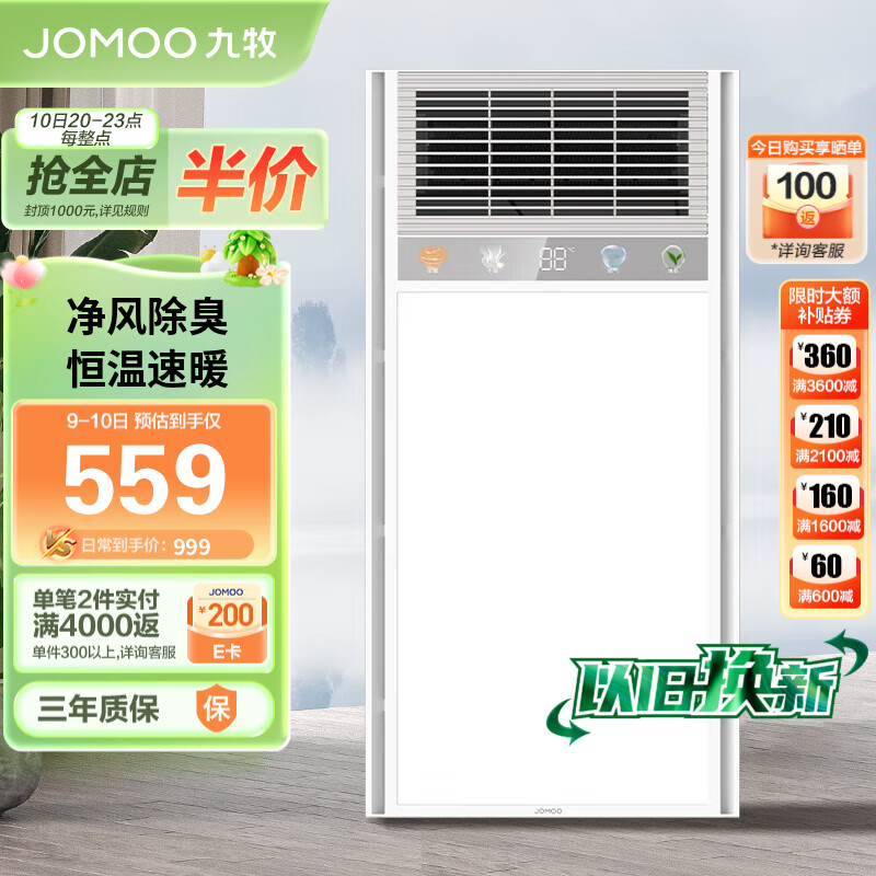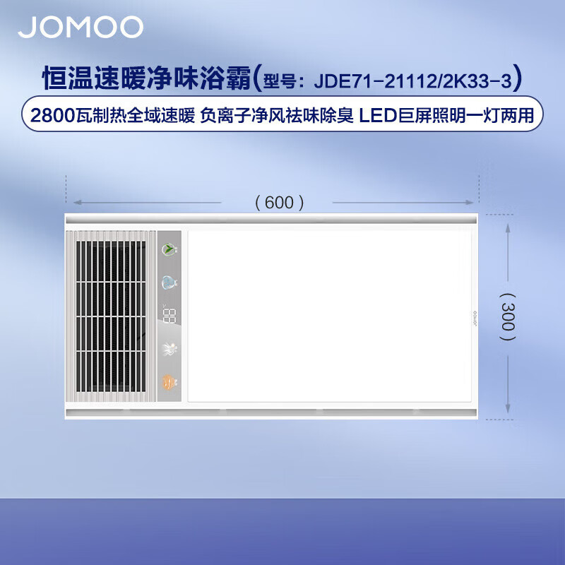 九牧(JOMOO)浴霸集成吊顶多功能取暖器八合一双核无线遥控JDE71-21112/2K33-3价格:709.00元!