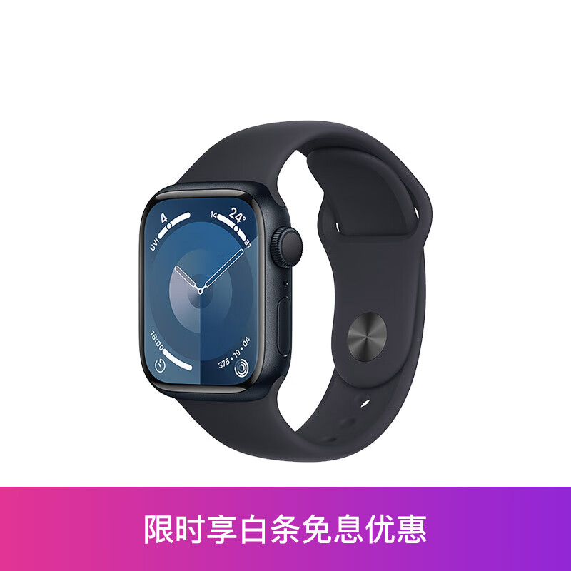 Apple/苹果 Watch Series 9 智能手表GPS款41毫米午夜色铝金属表壳 午夜色运动型表带M/L S9 MR8X3CH/A【免息版】价格:2999.00元!