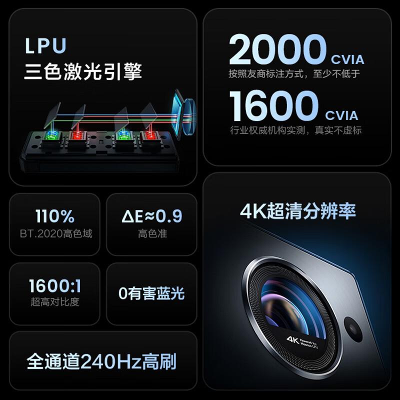 Vidda C1S 海信 4K超高清纯三色激光 投影仪家用家庭影院卧室白天投墙(含投影仪万向云台支架D6)价格:6588.00元!
