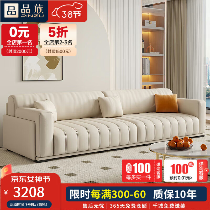 品族奶油风防猫抓绒沙发客厅小户型钢琴键直排沙发AZ-188 3.0米五b价格:3988.00元!