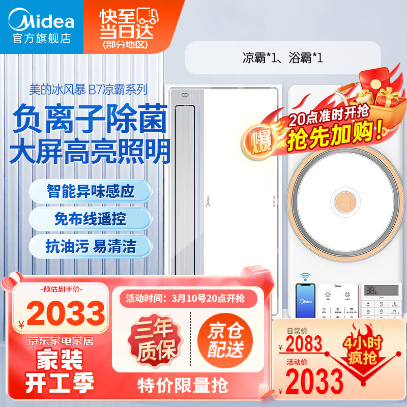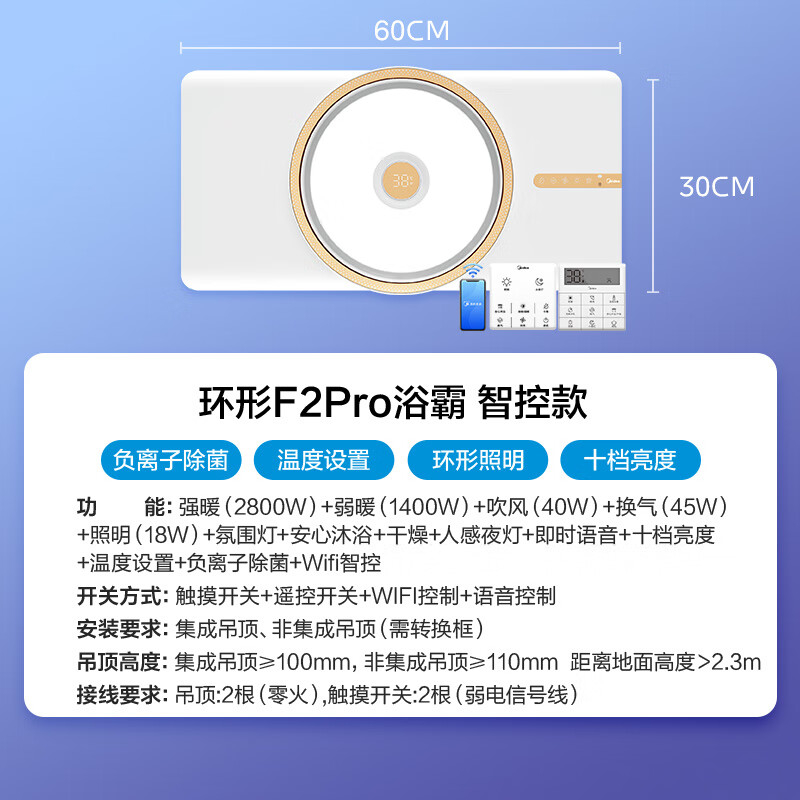美的(Midea)凉霸厨房卫生间集成吊顶照明一体负离子除味异味感应排气换气吹风价格:2083.00元!