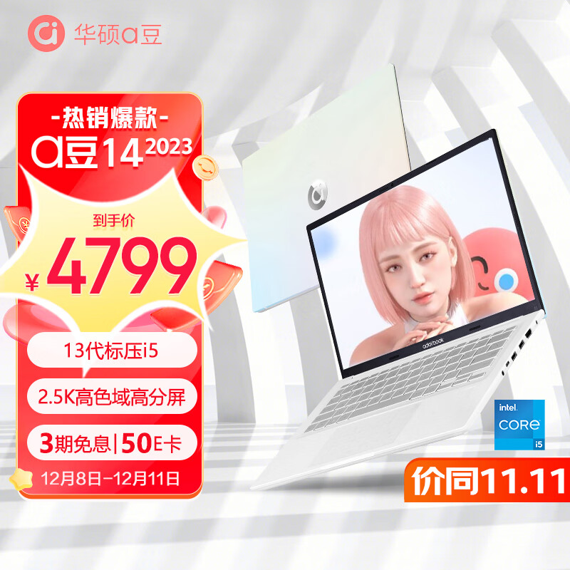 华硕a豆14 2023 13代酷睿标压i5 14英寸高性能轻薄办公笔记本电脑(i5-13500H 16G 512G 2.5K高分屏)微醺薄荷价格:4799.00元!