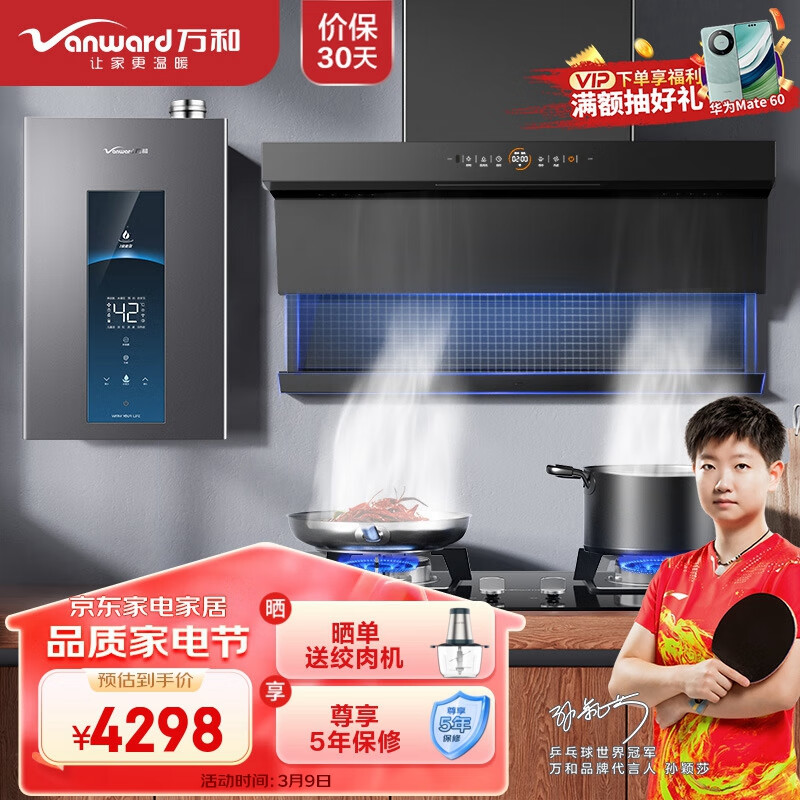 万和(Vanward)烟灶热三件套 厨房多件套 油烟机燃气灶一级零冷水热水器套装WL880+B7L51+MLS5D16(天然气)价格:4298.00元!