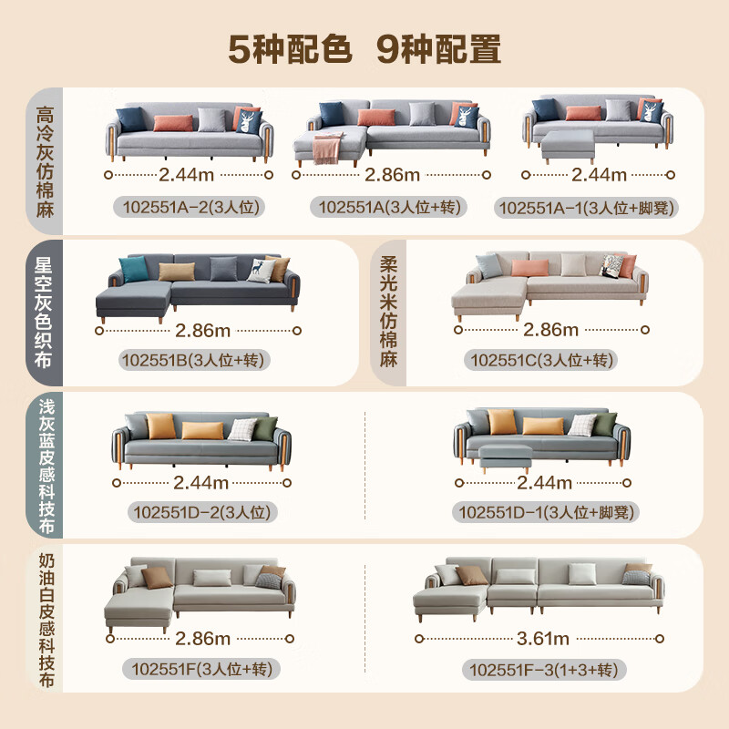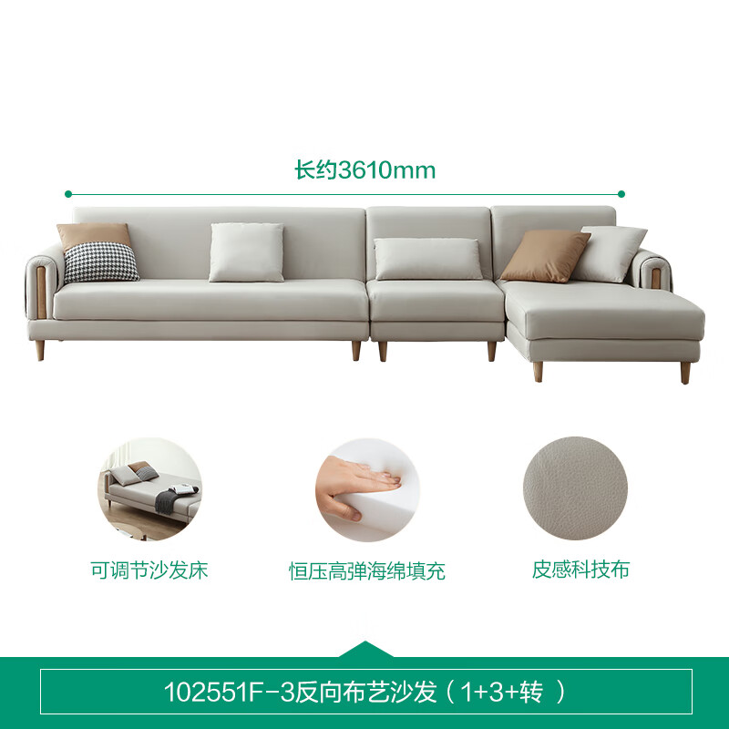 全友家居 北欧科技布艺沙发床大户型客厅现代简约转角沙发家具102551价格:5427.14元!