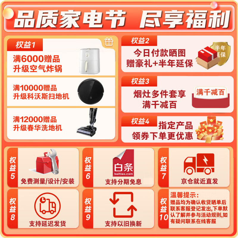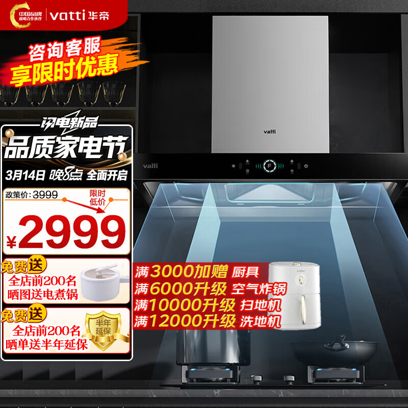 华帝(VATTI)三腔·启世S3 欧式抽油烟机灶具套装 23立方大吸力烟灶燃气灶套装挥手自动清洗i11180 厨房三件套 亲民价 烟灶套装(180+5.0kW猛火灶73B)价格:3499.00元!