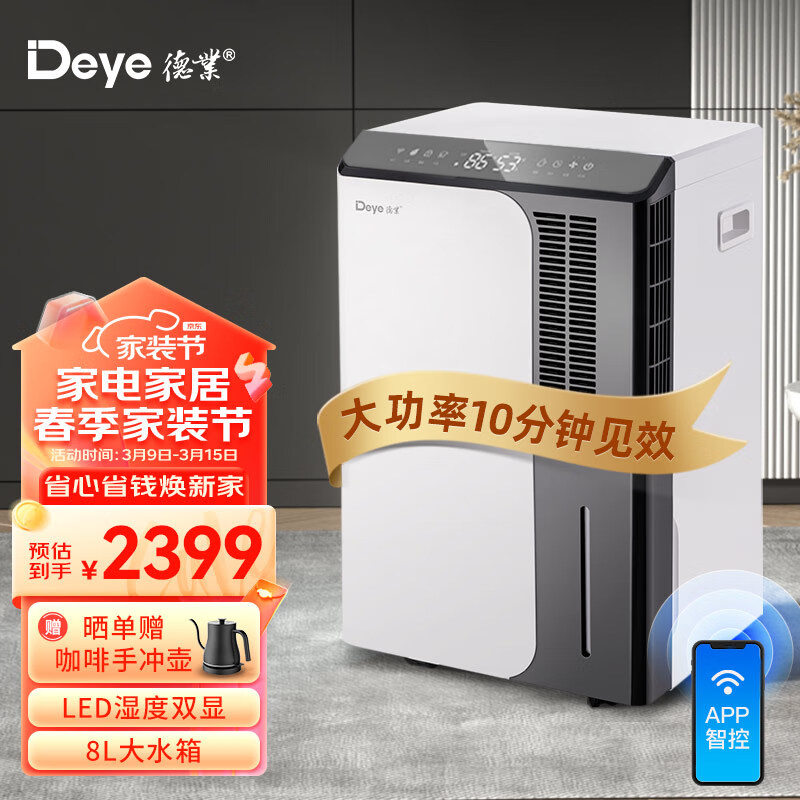 德业(Deye)除湿机/抽湿机 除湿量50升/天 App手机遥控 家用地下室复式别墅商用工业吸湿器 DYD-D50A3价格:2199.00元!