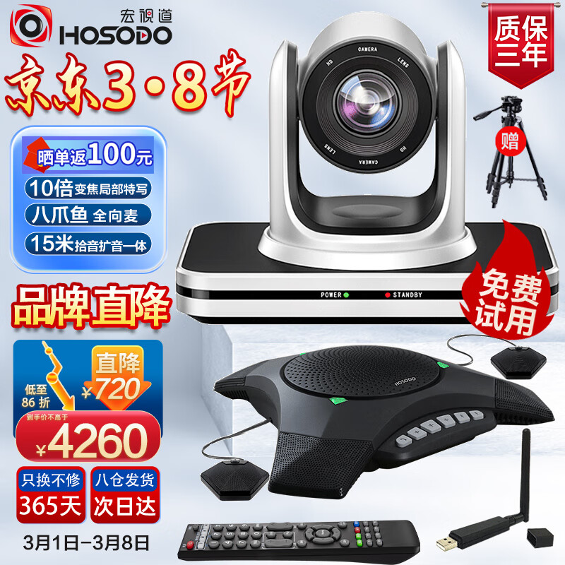 宏视道大型视频会议室解决方案(会议摄像头HSD-VC210+无线扩展全向麦克风MC810W-EX)适用80平米TZ810EX价格:4980.00元!