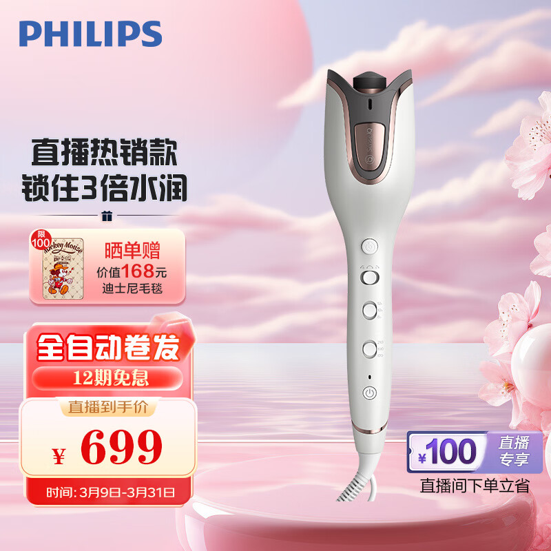 飞利浦(PHILIPS)全自动电卷发棒 升级款 SenseIQ技术 防烫造型 25mm? BHB878/15 陶瓷白价格:799.00元!