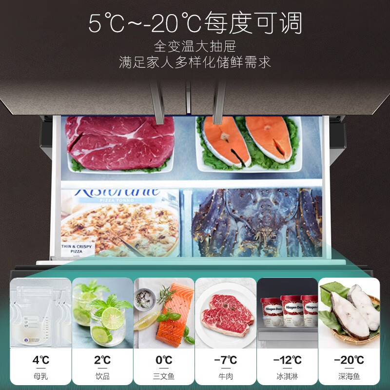 卡萨帝(Casarte)502升自由嵌入法式多门四门家用超薄变频一级大容量全变温区抽屉式冰箱BCD-502WGCFDM7GYU1价格:9989.00元!