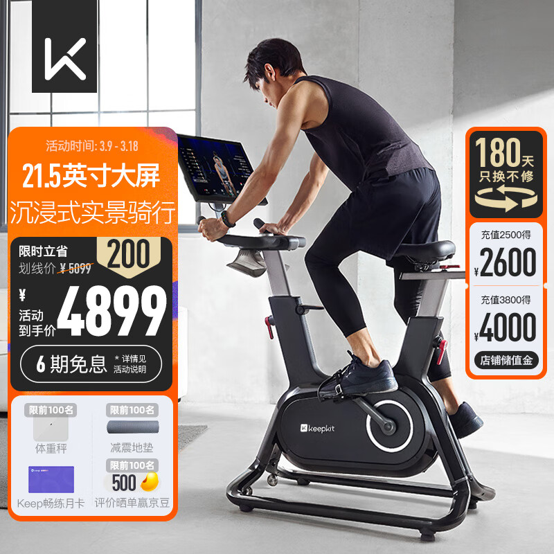 Keep动感单车C1 pro家用健身器智能调阻磁控室内脚踏自行车K0104A黑价格:4899.00元!