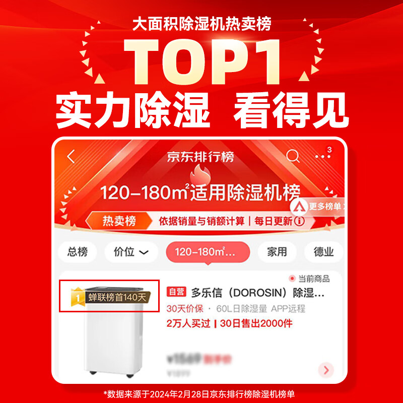 多乐信(DOROSIN)除湿机/抽湿机 除湿量60升/天 别墅 家用地下室工业除湿器 APP手机遥控 ER-60价格:2099.00元!