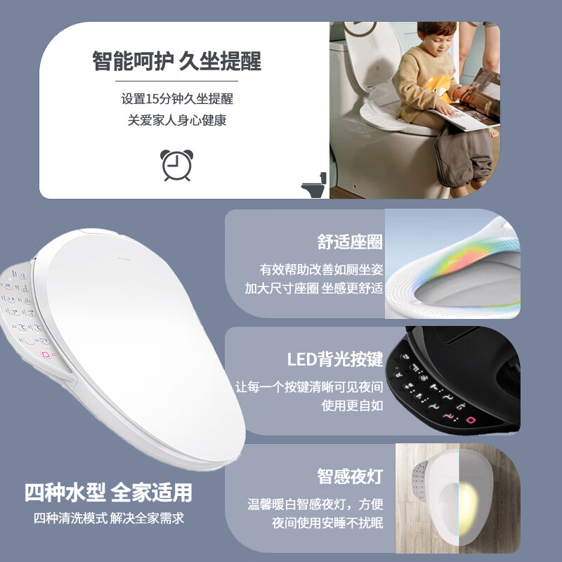 功能:暖风烘干,座圈加热,喷嘴自洁,夜灯照明