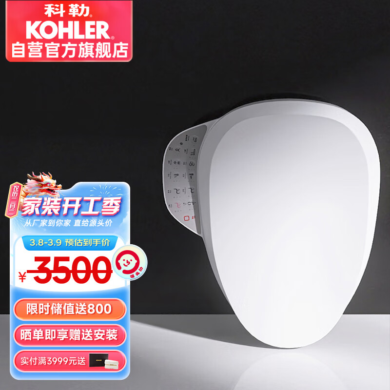 科勒(KOHLER)智能马桶盖坐便盖板清舒宝洁身器即热式K-31332T-0价格:4374.00元!
