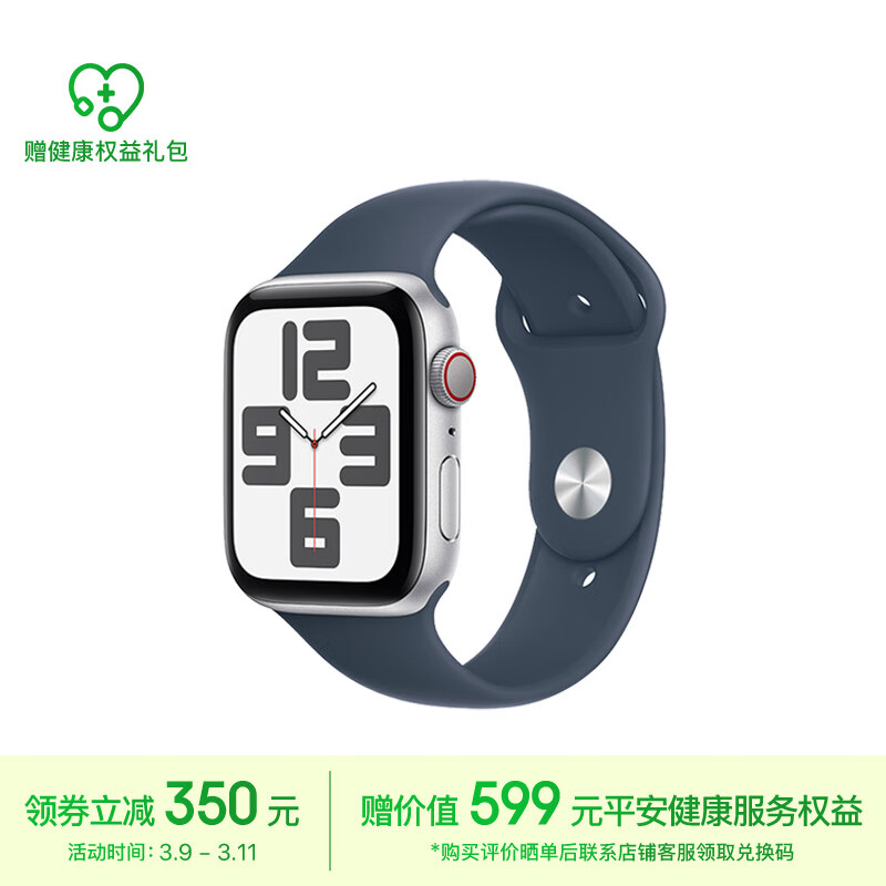 Apple/苹果 Watch SE 2023款智能手表GPS+蜂窝款44毫米银色铝金属表壳风暴蓝色运动型表带S/M MRHG3CH/A价格:2549.00元!
