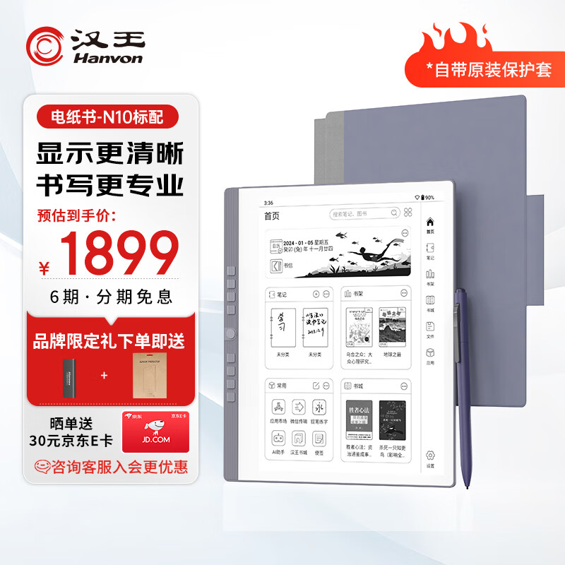 汉王(Hanvon)N10手写电纸本 10.3英寸电子书阅读器墨水屏电纸书平板电子笔记本智能办公本冰山灰标配价格:1979.00元!