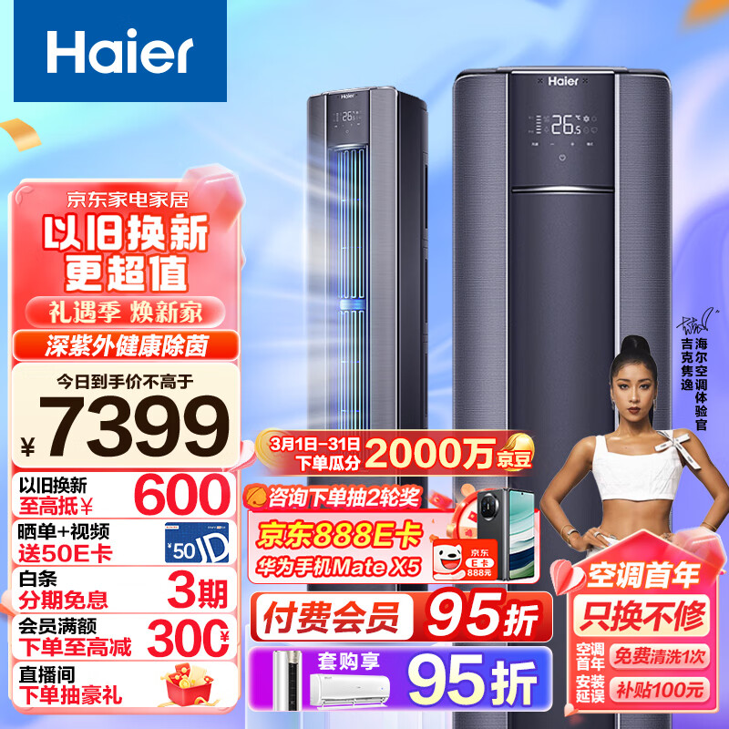 海尔(Haier)新一级变频 3匹 京彩 客厅空调立式柜机 布艺外观 京东小家智能 KFR-72LW/81@U1-La 以旧换新价格:7399.00元!