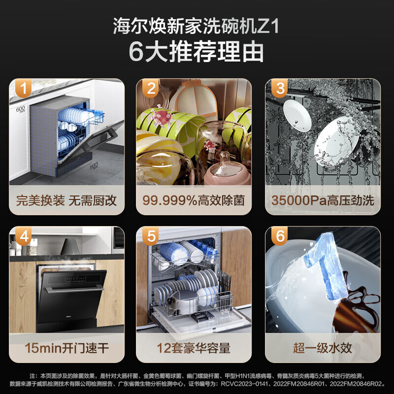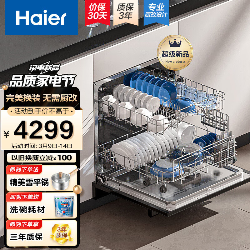 海尔(Haier)12套嵌入式壁嵌家用洗碗机焕新家Z1 洗消一体 高温除菌 一级水效 智能开门速干EBW12327YHU1价格:4128.00元!