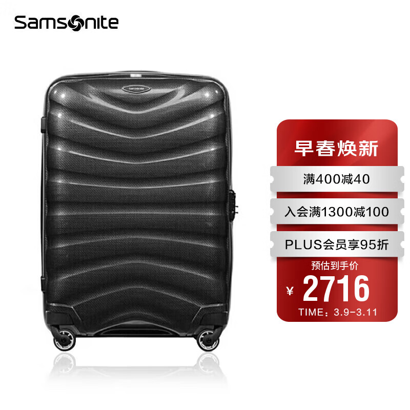 新秀丽(Samsonite)拉杆箱 轻盈耐刮行李箱万向轮旅行箱登机箱U72*18001碳黑色20英寸价格:2856.00元!