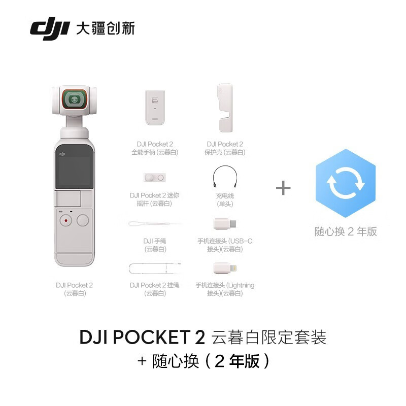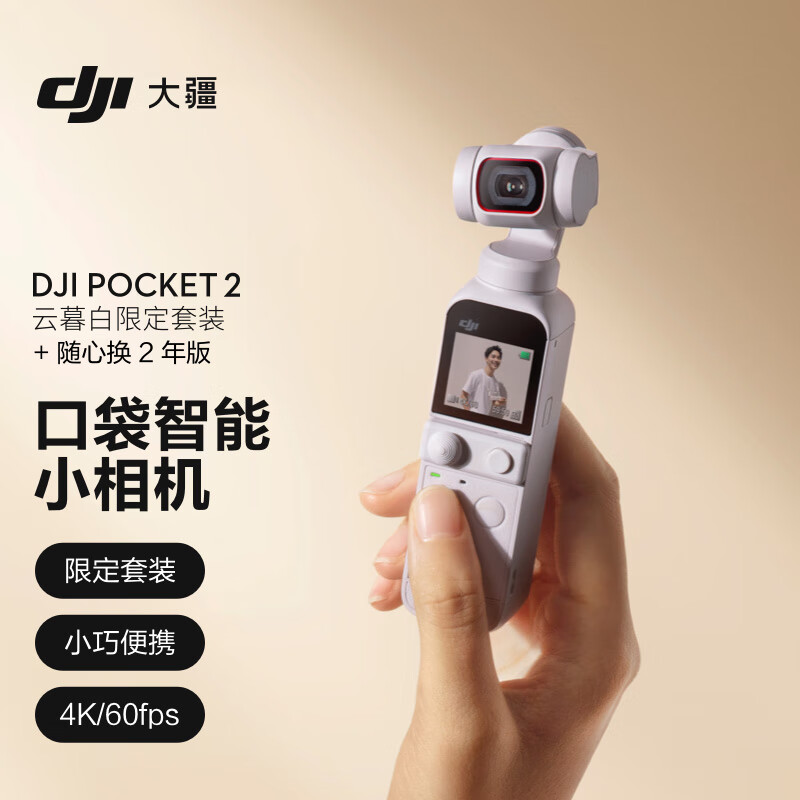 大疆 DJI Pocket 2 云暮白限定套装 灵眸口袋相机 防抖vlog云台运动相机+随心换2年版(虚拟卡)价格:2718.00元!