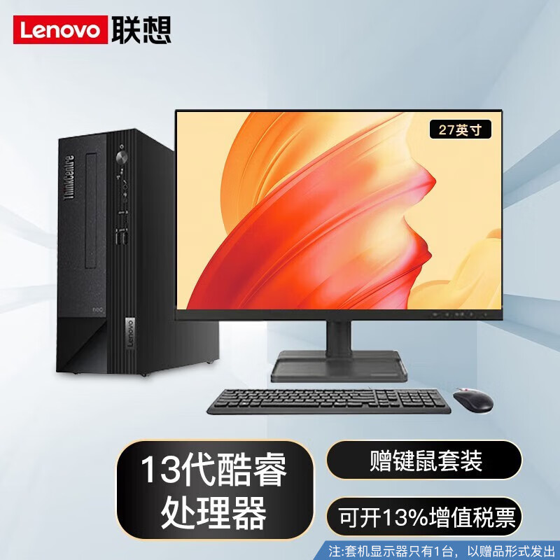联想台式机 13代酷睿i5/i7处理器 家用税控商用办公主机台式电脑整机 内置WIFI 主机+27英寸显示器 定制 i5-13400 16G 1T+512G固态价格:5898.00元!