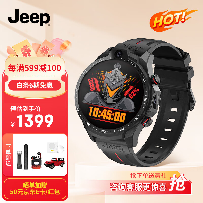 JEEP吉普黑骑士电话智能手表男4G插卡可上网运动微信心率监测节日礼物价格:1599.00元!