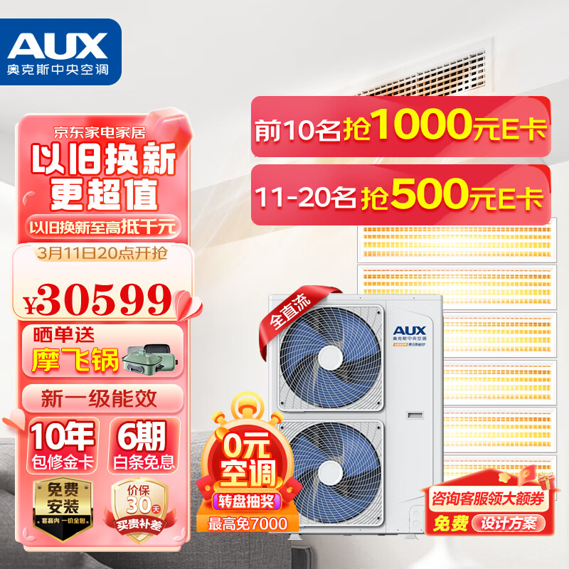 奥克斯(AUX)中央空调一拖六风管机空调大6匹家用多联机全直流变频一级能效包安装嵌入式空调DLR-160W/DCJ2S-JM价格:30599.00元!
