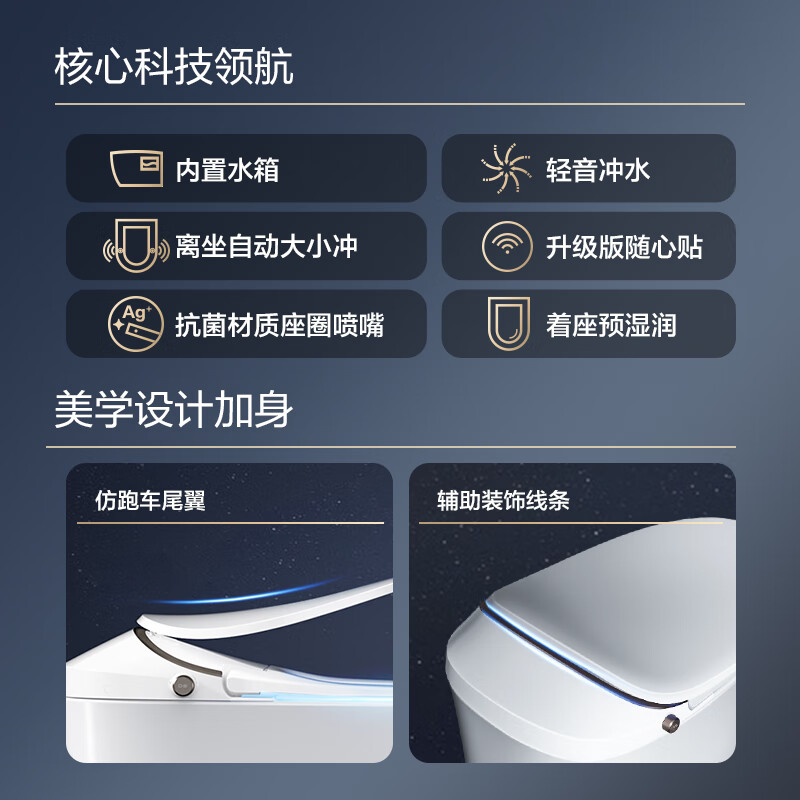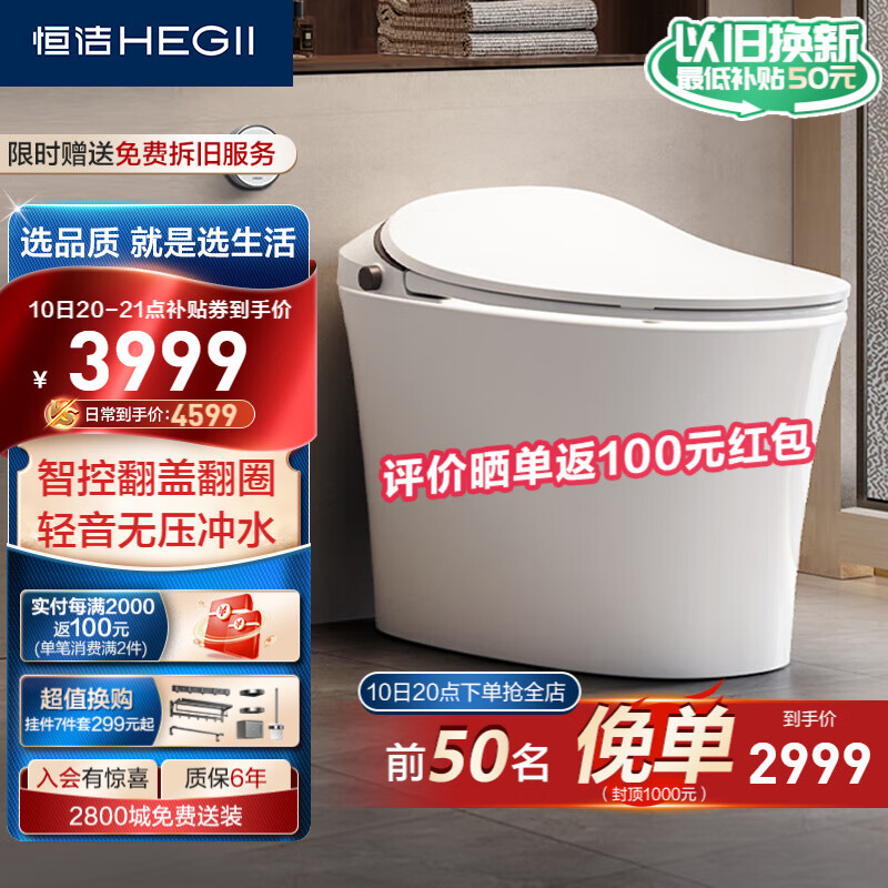 恒洁(HEGII)智能马桶Qs2Pro 挥手翻盖翻圈无水压限制智能坐便器HCE827B01-305价格:4599.00元!