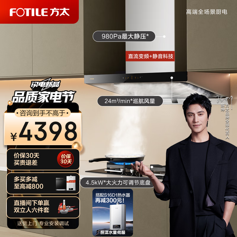 方太抽吸油烟机灶具套装 欧式顶吸排烟机燃气灶套餐 24巡航风量直流 家用烟灶EMQ6T+02-HT8BE.S天然气价格:4398.00元!
