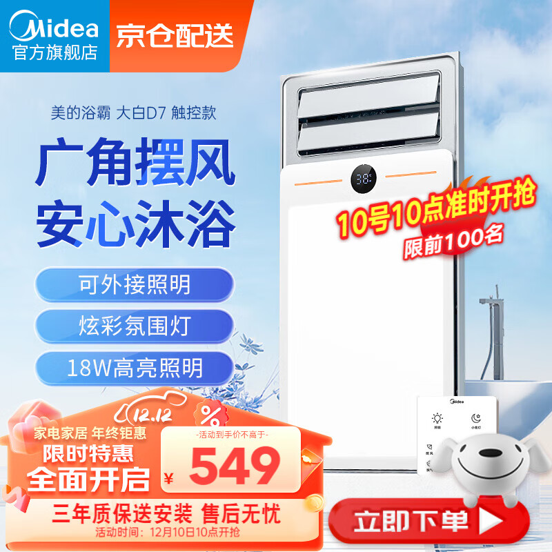 美的(Midea)浴霸暖风照明排气一体集成吊顶卫生间浴室灯取暖机触摸款价格:599.00元!