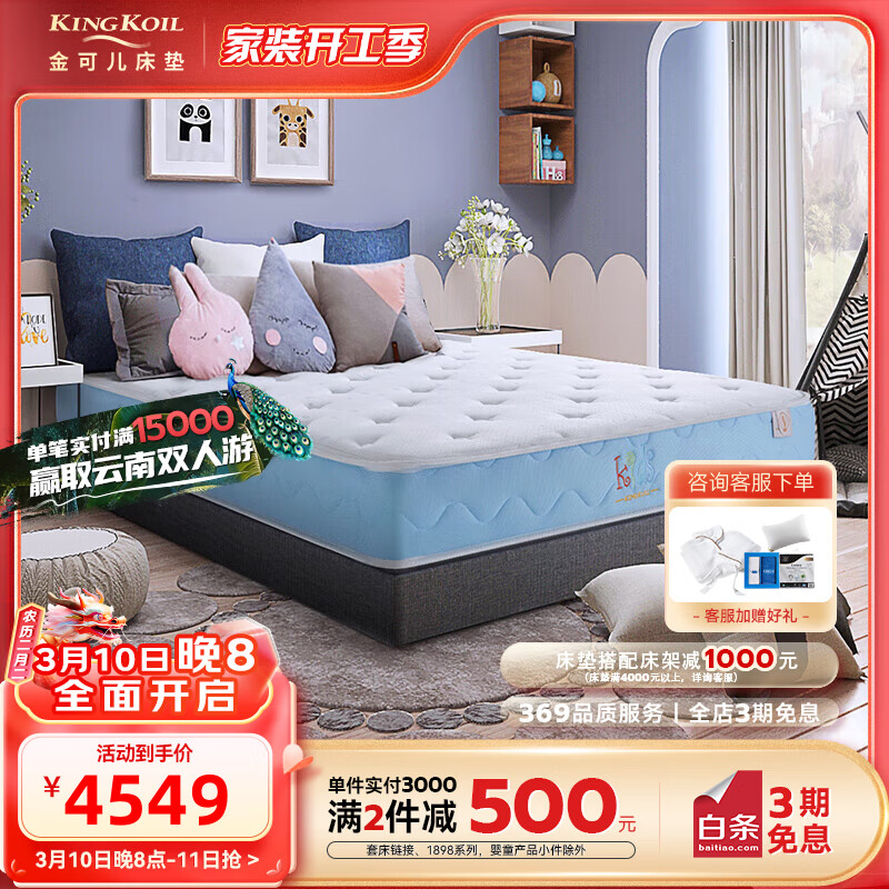 金可儿(Kingkoil)乳胶床垫七区独袋弹簧青少年床垫朝阳·蓝海1.5米*2米价格:4599.00元!