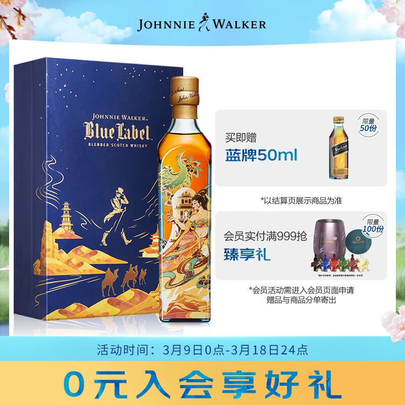 尊尼获加(JOHNNIE WALKER)蓝牌 女神节定制礼盒 敦煌飞天系列 花好月圆礼盒威士忌500ml价格:819.00元!