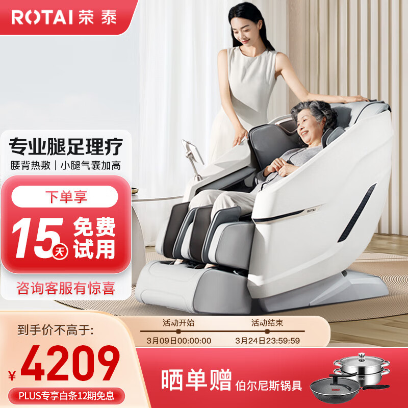 荣泰(RONGTAI)按摩椅家用全身太空舱零重力多功能智能电动按摩沙发椅子生日礼物 S53 象牙白价格:4209.00元!