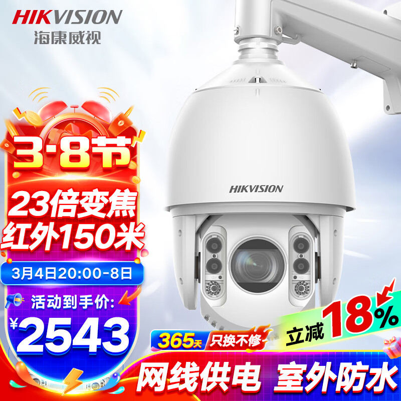 HIKVISION海康威视监控器摄像头网线供电360°云台旋转智能室外防水400万2K高清红外夜视球机DS-2DC7423IW-DE价格:3114.00元!