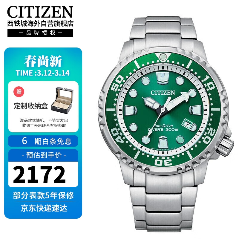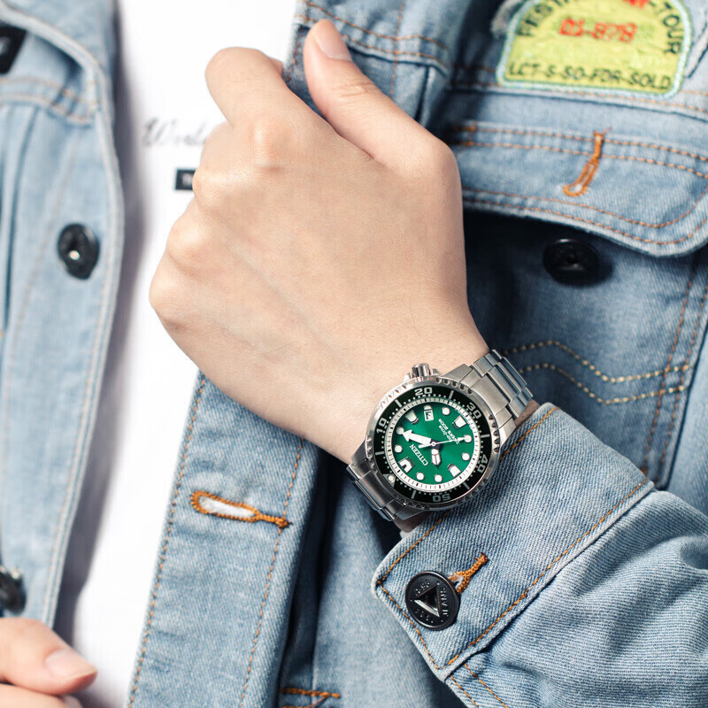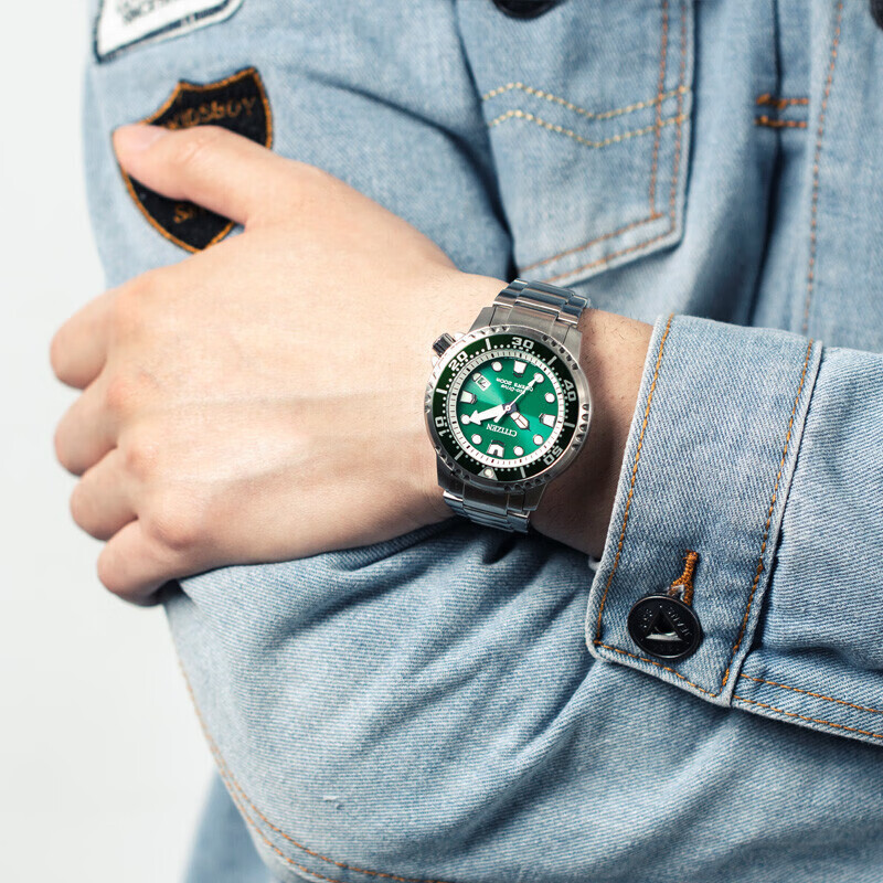 西铁城(CITIZEN)光动能钢带潜水表夜光指针日历时尚休闲防水手表BN0158-85X价格:2412.00元!