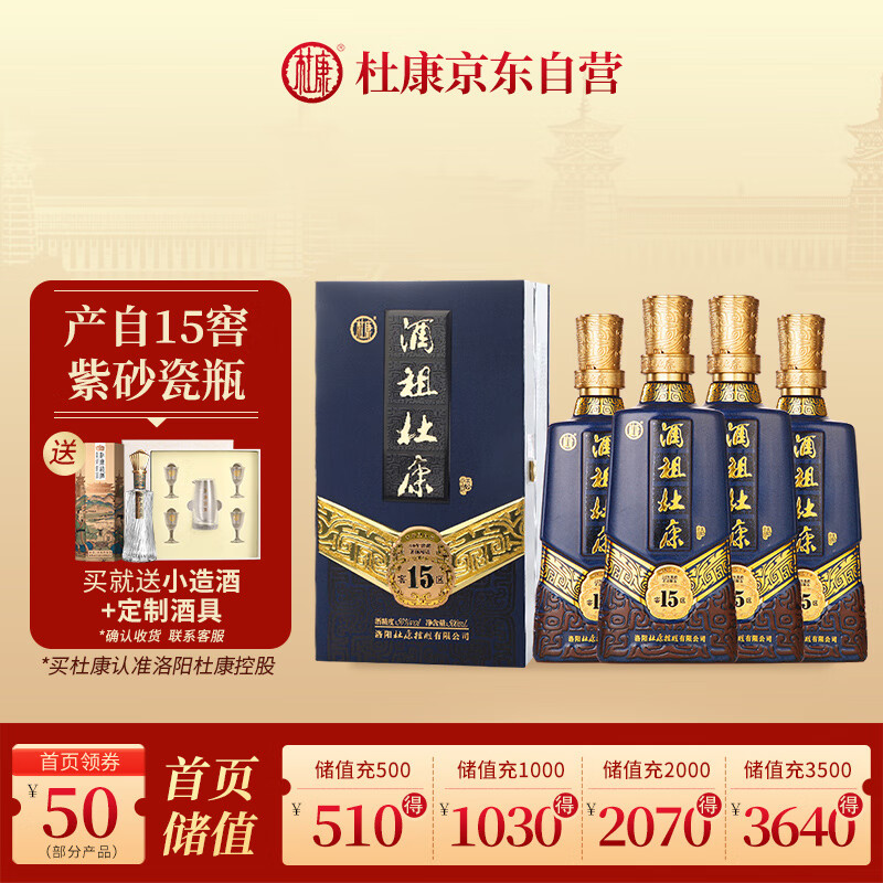 杜康酒祖杜康15窖区浓香型白酒50度500ml*4瓶整箱【送礼宴席自饮】价格:2338.00元!