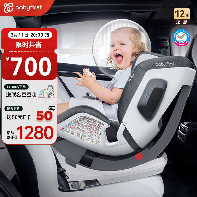 宝贝(Babyfirst)灵犀婴儿童座椅汽车用约0-4-7岁宝宝车载可躺 北极灰R160A价格:1480.00元!