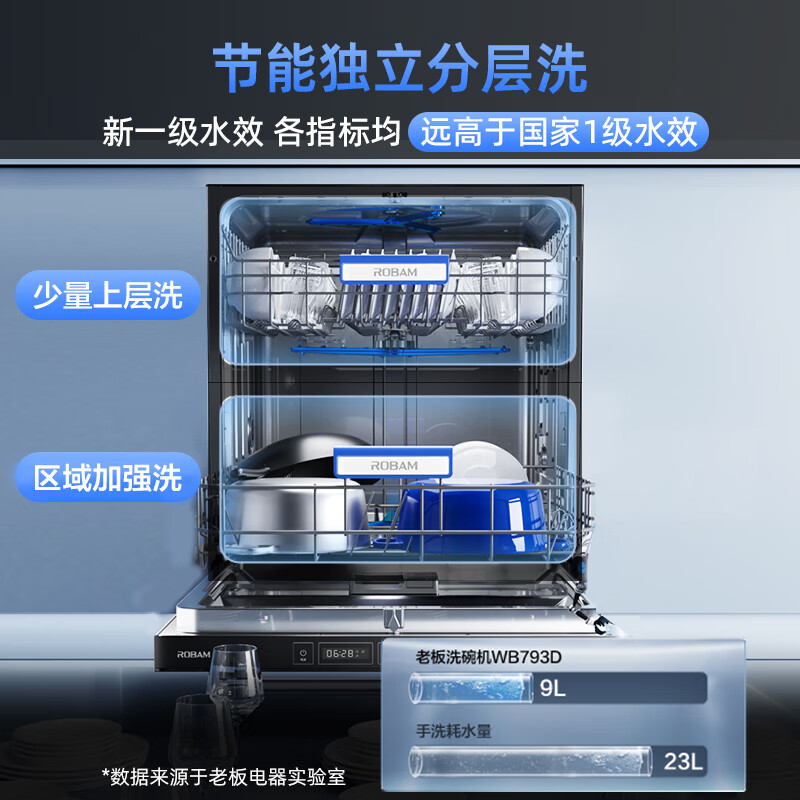 老板(Robam)13套嵌入式去重油污消毒存储一体机分层洗50L家用全能蒸烤炸3合1蒸烤洗碗机两件套WB793D+CQ976D价格:8898.00元!