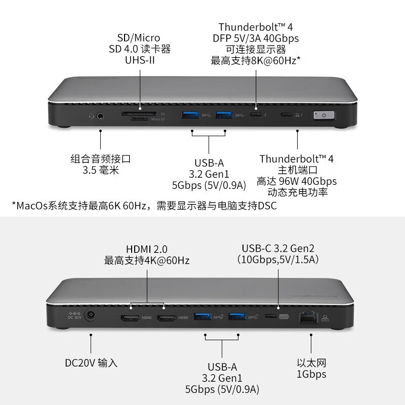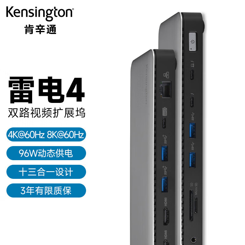 肯辛通(Kensington)SD5760T 13合1Type-C 雷电4扩展坞 双路4K 单路8k USB 3.2拓展坞 K34110价格:2549.20元!
