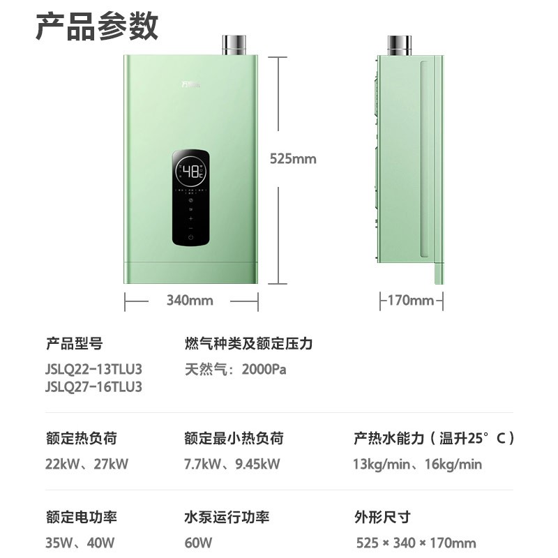万家乐(Macro)TLU3增压零冷水燃气热水器一级能效冷凝式热水器 智能防冻 WIFI智控 天然气 16L价格:2799.00元!