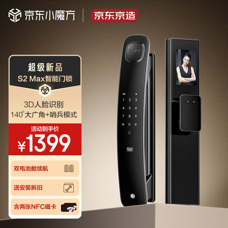 京东京造S2 Max 智能门锁 3D人脸识别全自动电子锁 猫眼带屏幕指纹密码锁价格:1499.00元!