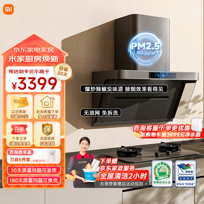 米家小米侧吸抽油烟机 净味净烟机P1 智能变频油烟机 家用厨房大吸力吸油烟机MJ04CY价格:3399.00元!