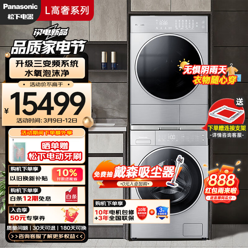 松下(Panasonic)10+10轻奢洗烘套装 滚筒洗衣机 热泵烘干机 除菌除螨 水氧泡沫净 黄金正反转 智慧云 L185+LHM02Y2价格:15499.00元!