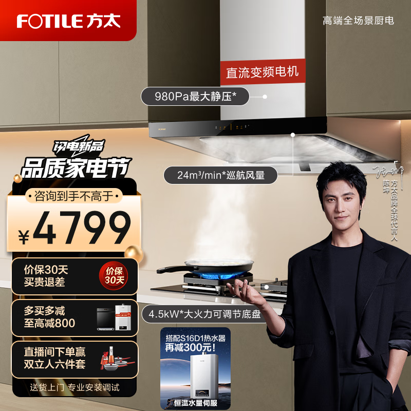 方太抽吸油烟机灶具套装 欧式顶吸排烟机燃气灶套餐 24巡航风量直流 家用烟灶套装EMQ6T+TH27B液化气价格:4799.00元!