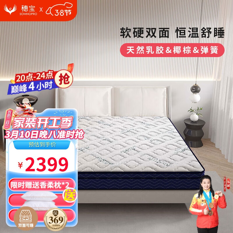 穗宝(SYMBOL)床垫 软硬双面3D椰棕乳胶整网弹簧床垫 恒感5G·芯悦 1.5米*2米价格:2919.00元!