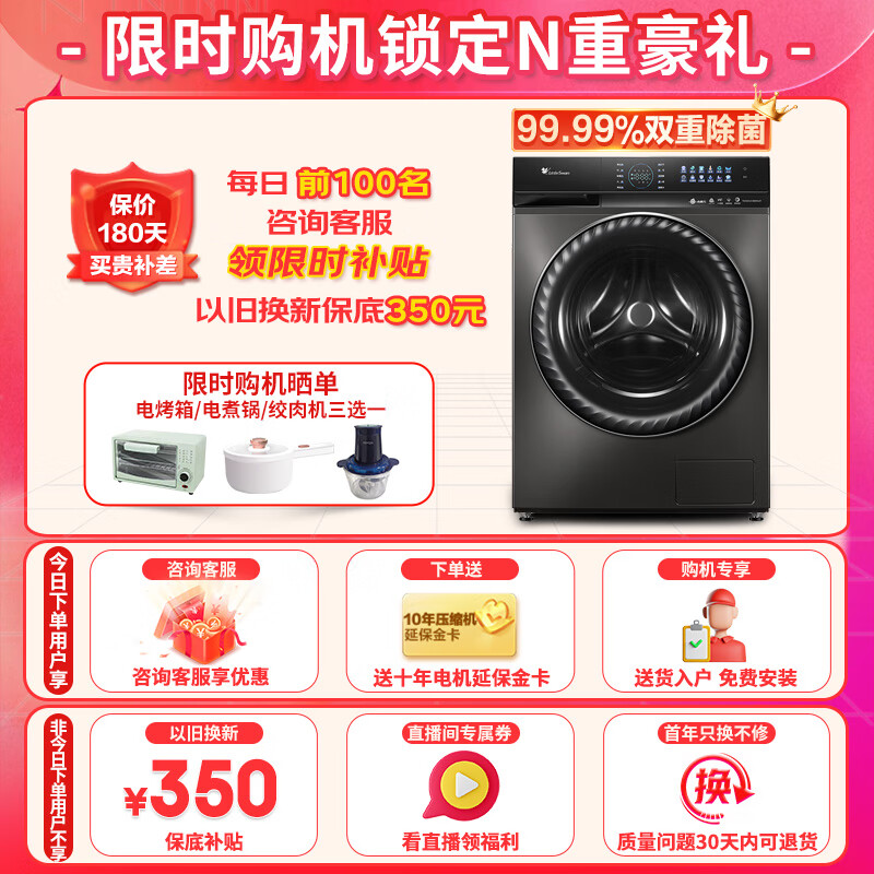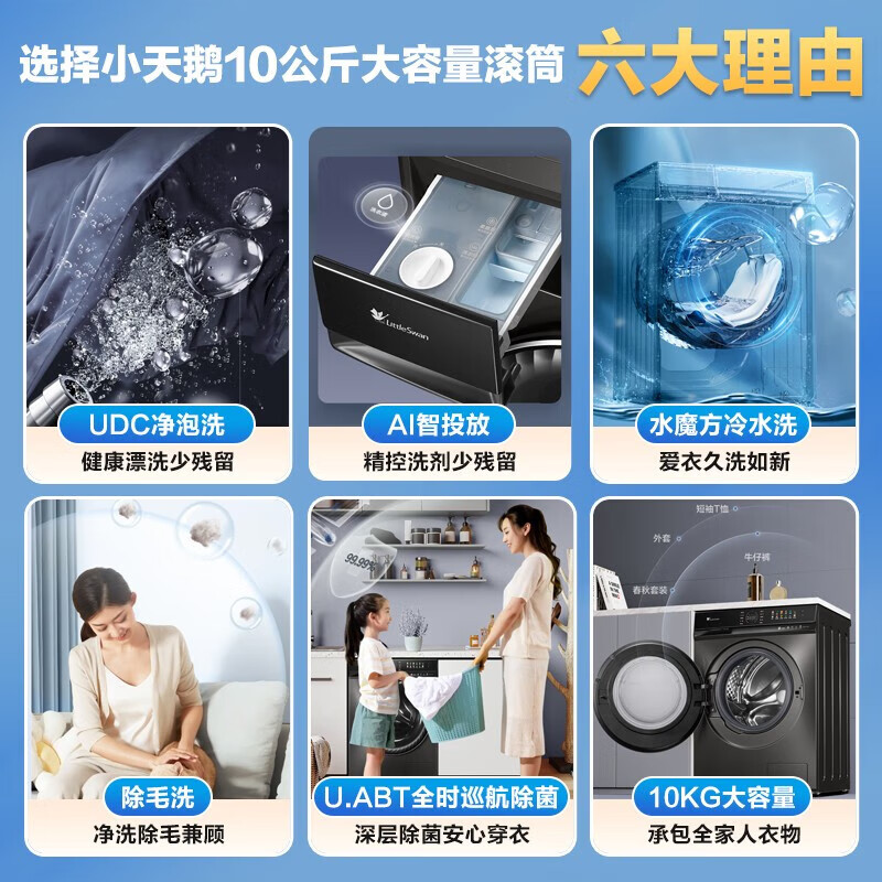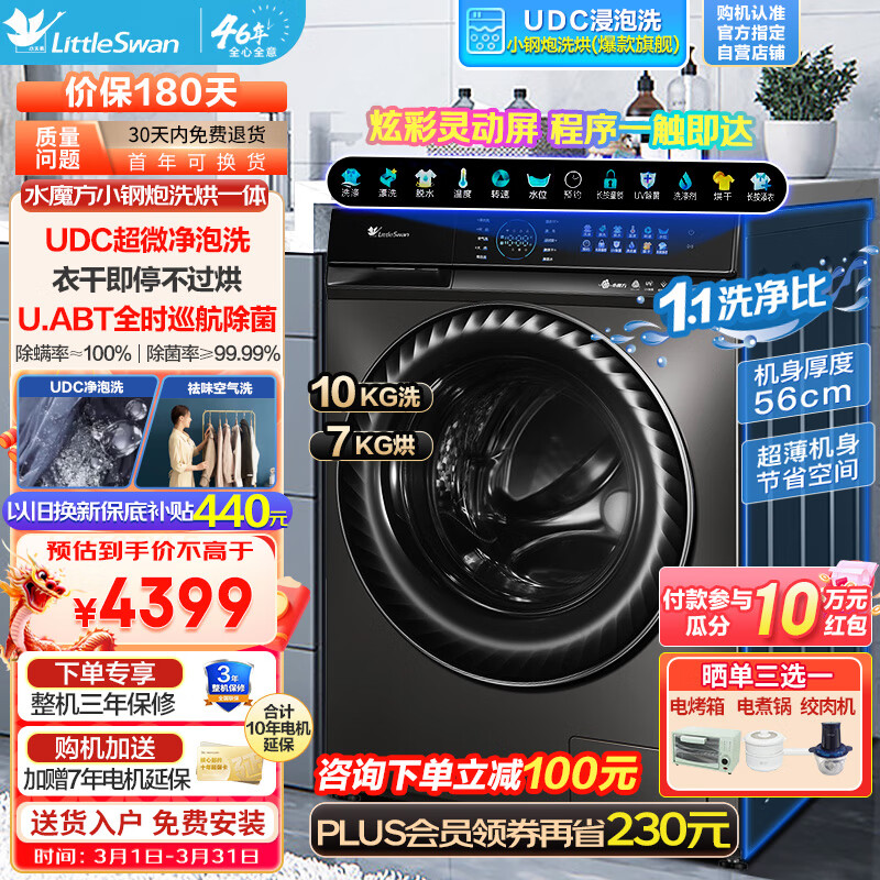 小天鹅(LittleSwan)10公斤水魔方滚筒洗衣机小钢炮智能投放1.1高洗净比超微净泡超薄嵌入以旧焕新【小天鹅809相似款】 洗烘一体| 祛味空气洗TD100VC189MUIT价格:4399.00元!