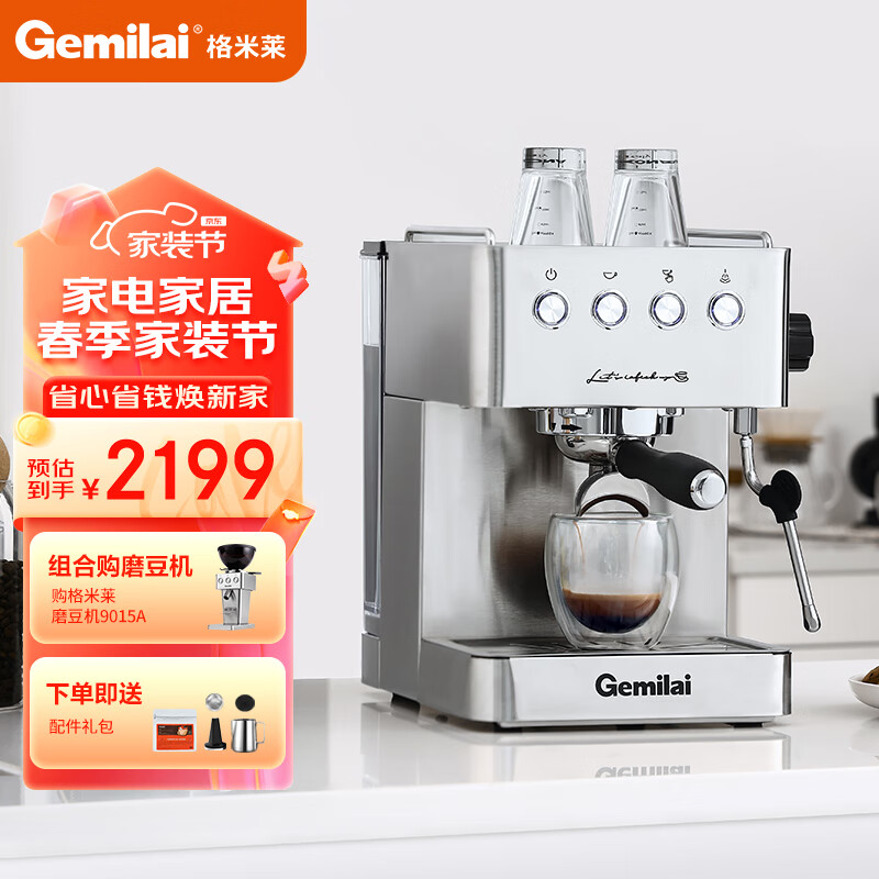 格米莱(GEMILAI)小型家用半自动泵压式萃取咖啡机CRM3005E+9015不锈钢价格:2798.00元!