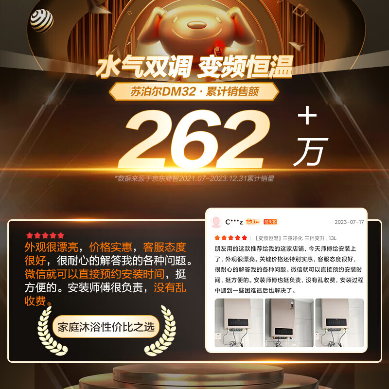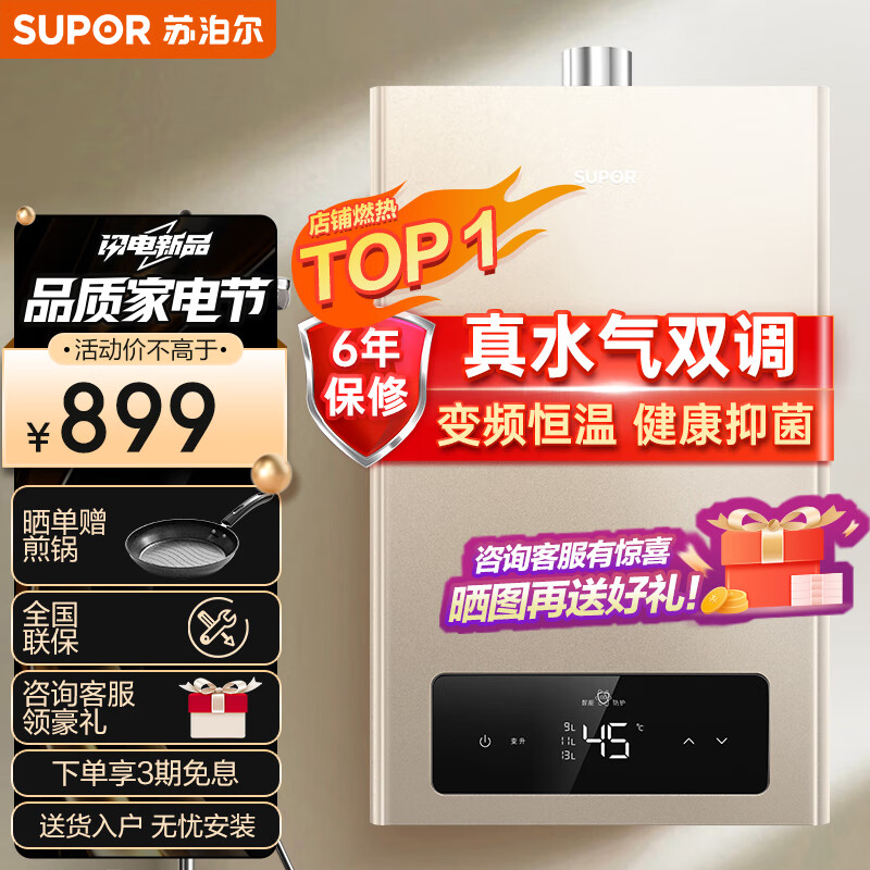 苏泊尔(SUPOR)燃气热水器13升智能变频恒温 家用天然气热水器 水气双调三档变升双防冻13R-DM32价格:899.00元!